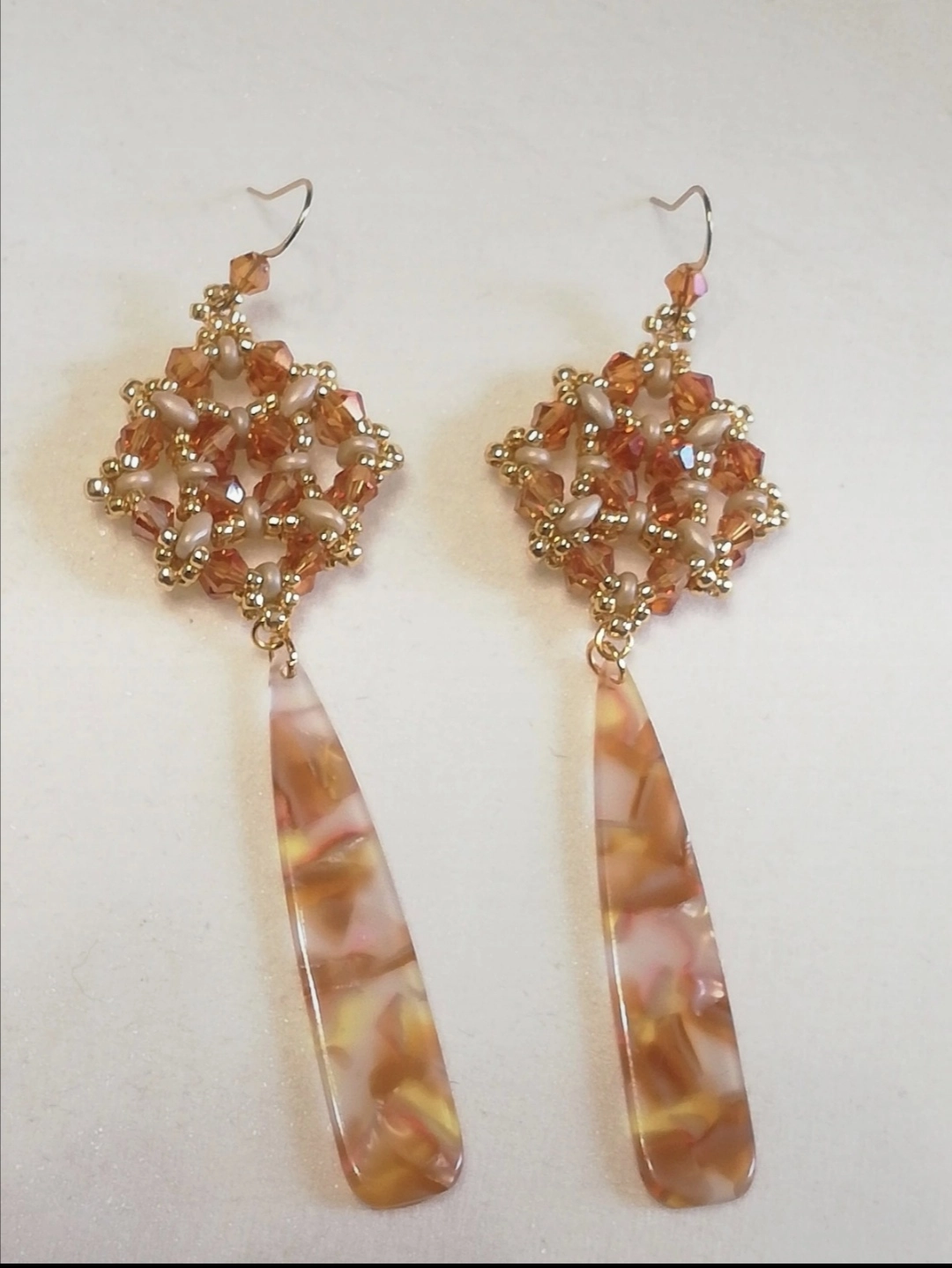 Boucles d'oreilles réalisées selon la technique du tissage de perles. Boucles d'oreilles artisanales fabriquées en Italie.