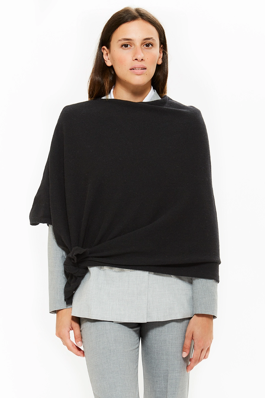 Le Ponchetto noir en laine mérinos et cachemire est idéal pour la saison hivernale. Parfait sur les vestes et les manteaux, il peut également être porté comme une écharpe. Fabriqué en Italie