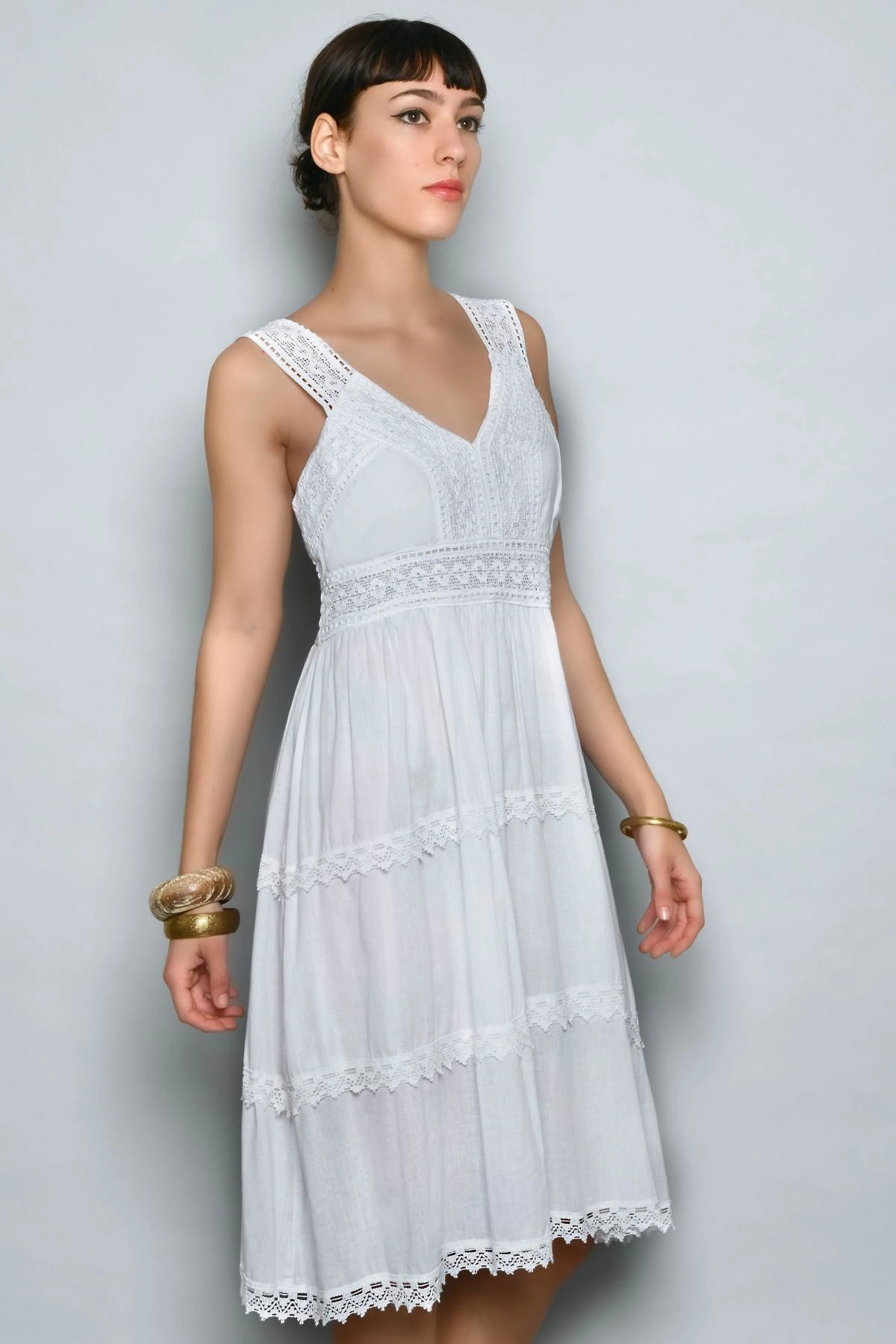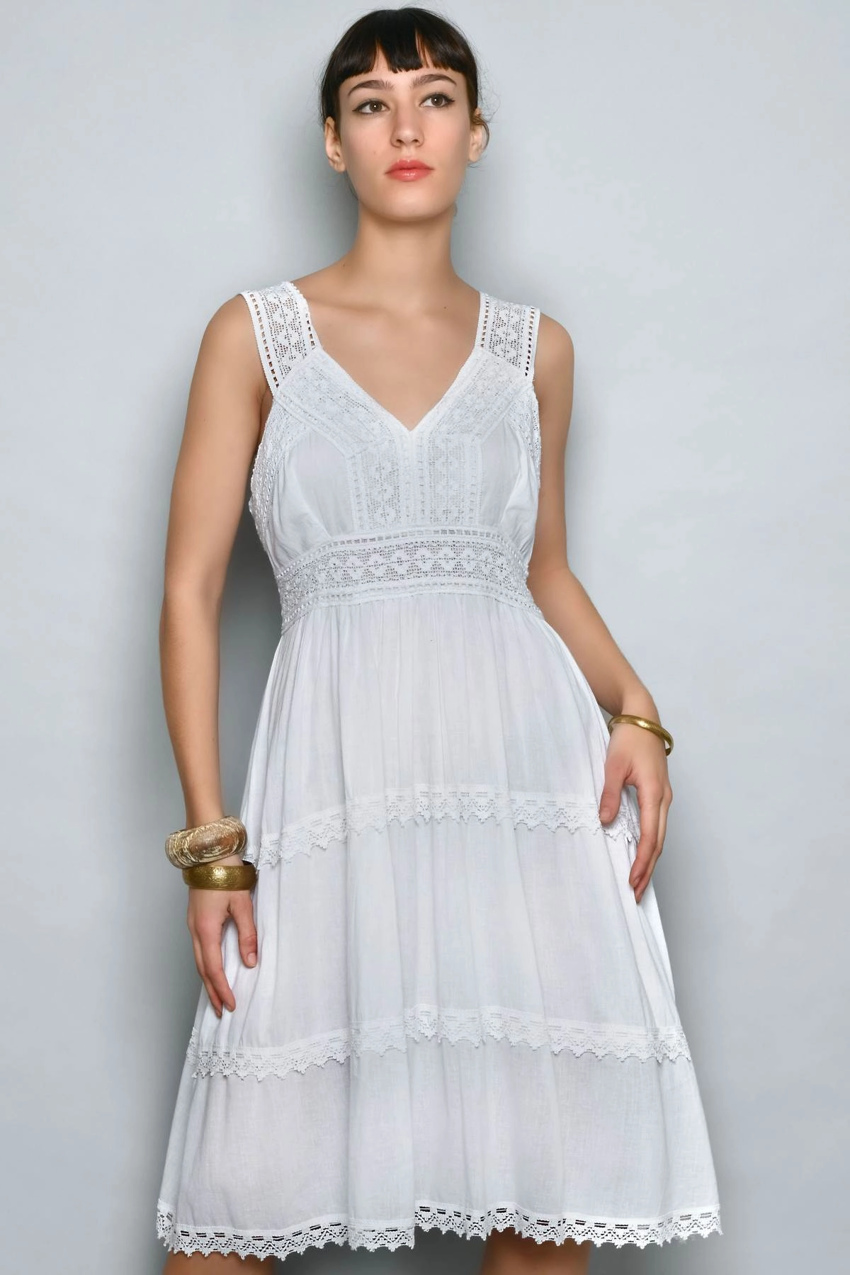 Robe courte femme d’été blanche en viscose avec dentelle, style Ibiza chic