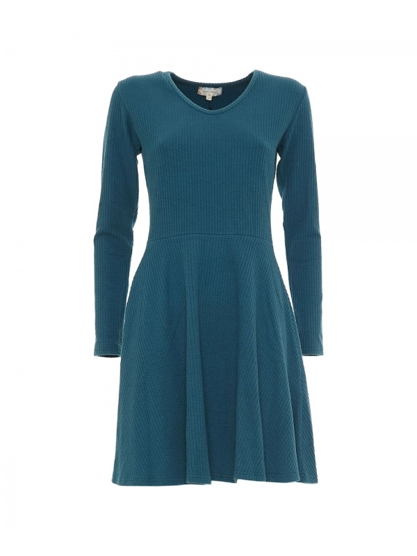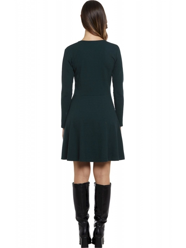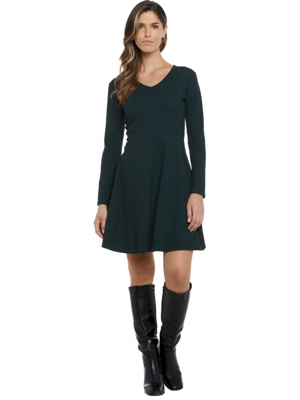 Robe d’hiver casual Baba Design avec coupe évasée et décolleté en V, disponible en deux couleurs : vert et bleu poudré (carta da zucchero). Modèle à manches longues en tissu à fines côtes, adapté à la saison froide, proposé en deux tailles (consultez le guide des tailles). Cette robe casual est idéale pour vos looks quotidiens ou professionnels, et se marie facilement avec les vêtements et accessoires de la même collection.