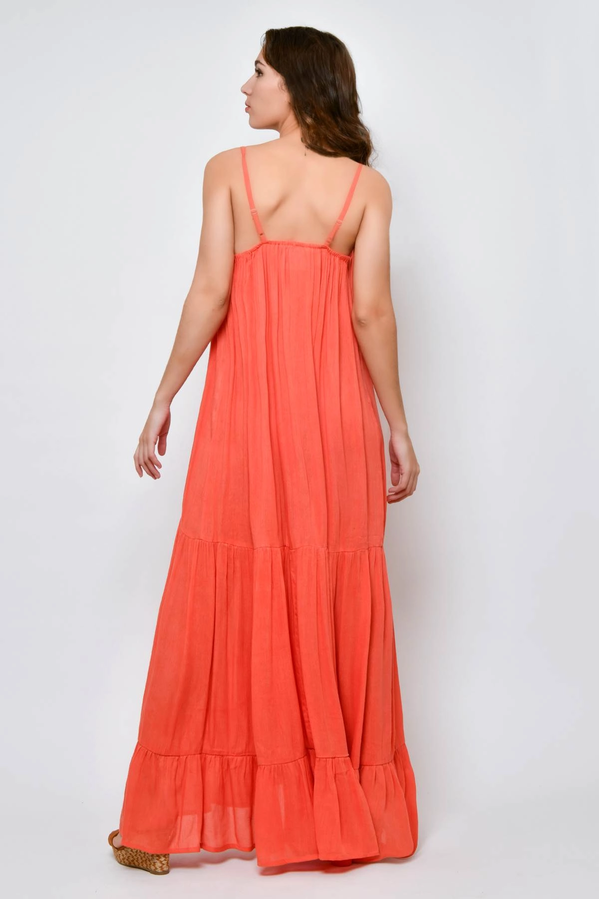 Robe longue femme d’été style Ibiza en viscose orange